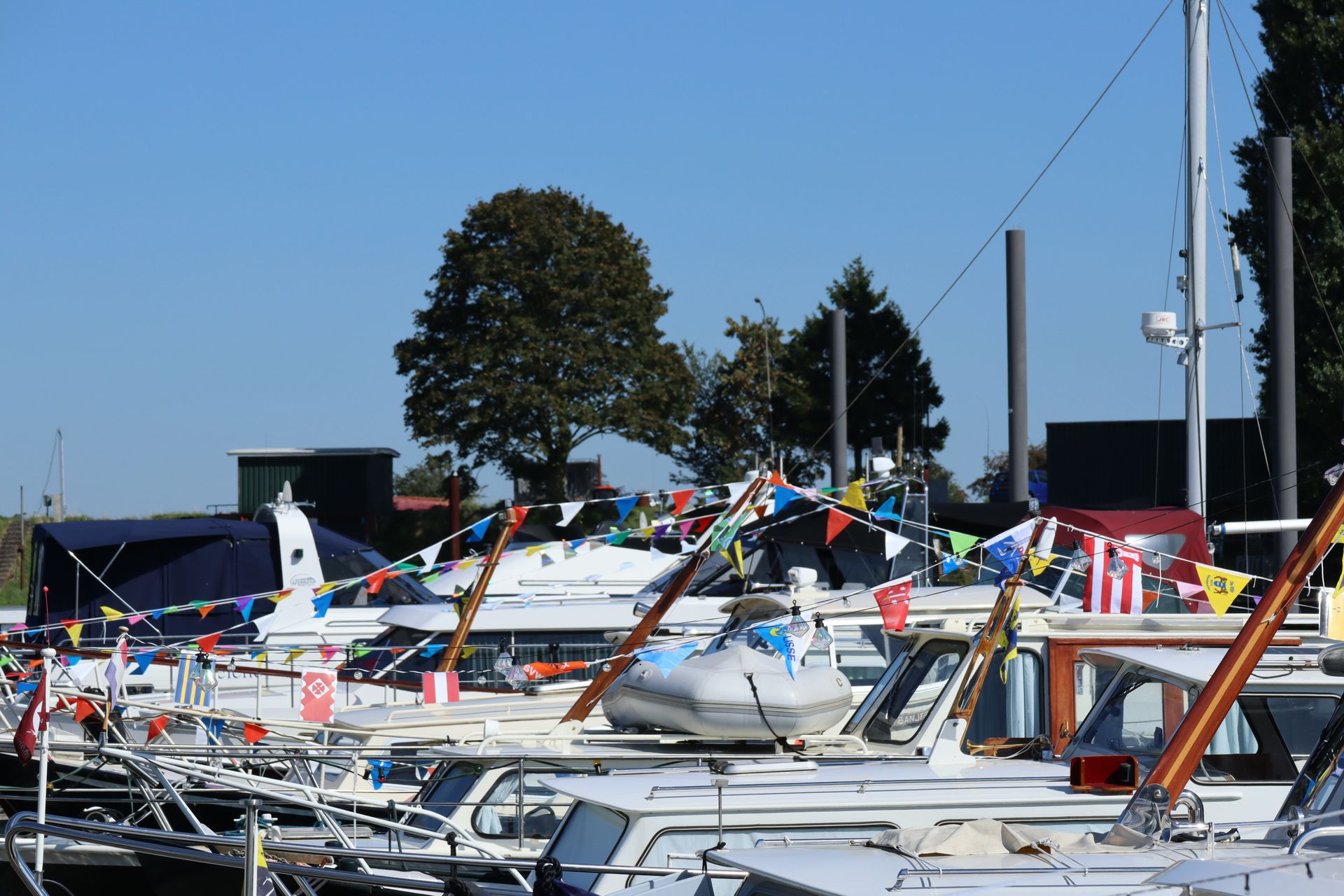 Zondag 3 September 2023, 14:00 uur, de eerste gasten beginnen al binnen te lopen op het versierde haventerrein van onze vereniging. Ondanks de overduidelijke werkzaamheden vanwege de dijkverzwaring ziet het er toch feestelijk en vrolijk uit, met het versierde clubhuis en de gepavoiseerde boten in de haven. En niet in de laatste plaats draagt ook het prachtige weer hier aan bij.