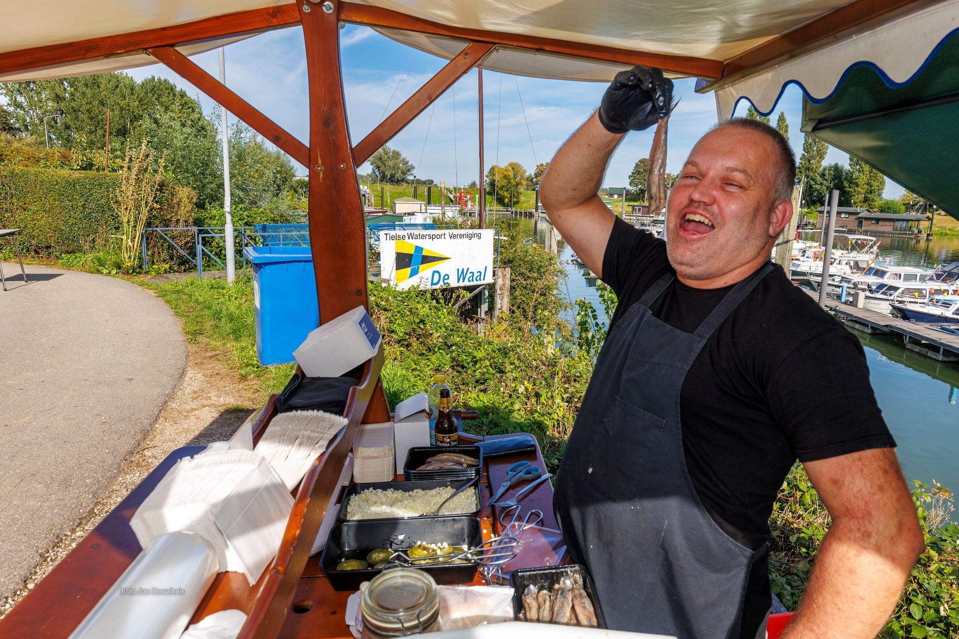 En dan is het tijd voor plezier. Het koor Fruitig Geflipt begint met hun eerste optreden en de gezelligheid wordt meteen over het terras en het hele terrein verspreid. Over het terrein verdeeld is er drank, barbecuespiesen en haring en paling te verkrijgen, waar dankbaar gebruik van wordt gemaakt. Ook liggen er nog enkele kano’s klaar voor gebruik, waar door deze en gene ook nog even een vaartochtje mee wordt gemaakt door de jachthaven. In de pauze voor het koor, wordt de muzikale omlijsting overgenomen door de troubadour “De dansende Balg” met gezellige en toepasselijk trekzak-muziek.